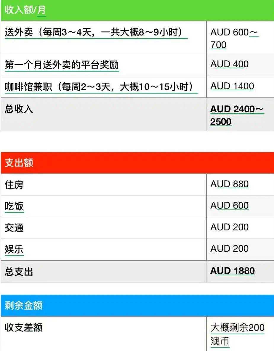 这样下来,我第一个月接了80多单,加上平台奖励、高峰补贴和小费,共赚1200多澳元(约合人民币5617元)。另一份咖啡馆兼职解决了我的房租问题,有时一个月还有300澳元节余。