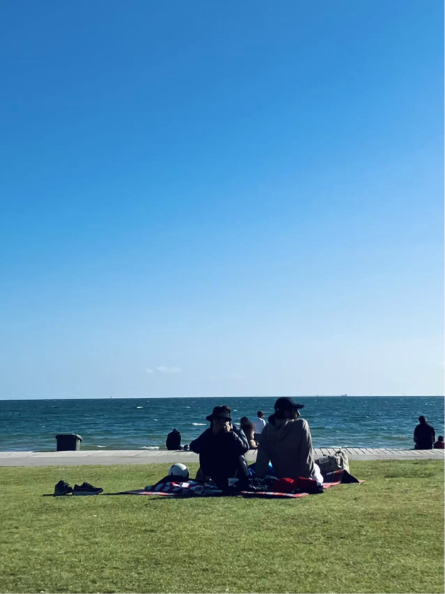 对我来说,一周工作时长不超过30小时才是真福音。我受够了8小时工作制,朝九晚五地坐在办公室里的生活。咖啡馆关门早,我通常下午四点就在海边休息了。此时,也已经有很多人在海边聊天、遛狗和躺平了。