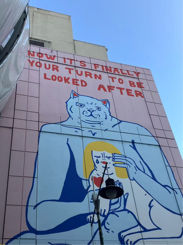 因为遇到很多不紧不慢的人,我开始心态放平,走路送外卖就当解锁不同街区的游戏。有的街区艺术活动众多;有的街区涂鸦设计完美地融入各种招牌,充满活力;有的则是移民聚居区,身份认同主题的海报标语随处可见。