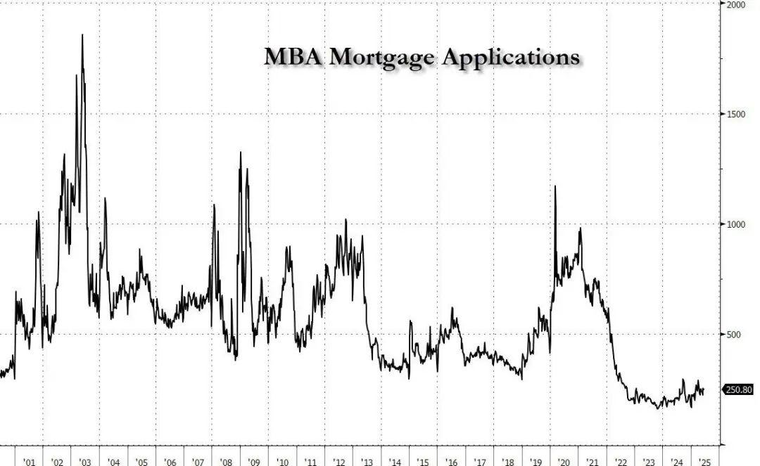 数据显示,在2024年年中的时候,美国抵押贷款发放量曾骤降至接近历史最低点,2025年第一季度虽有小幅改善,但利率仍被大多数购房者视为高得离谱。