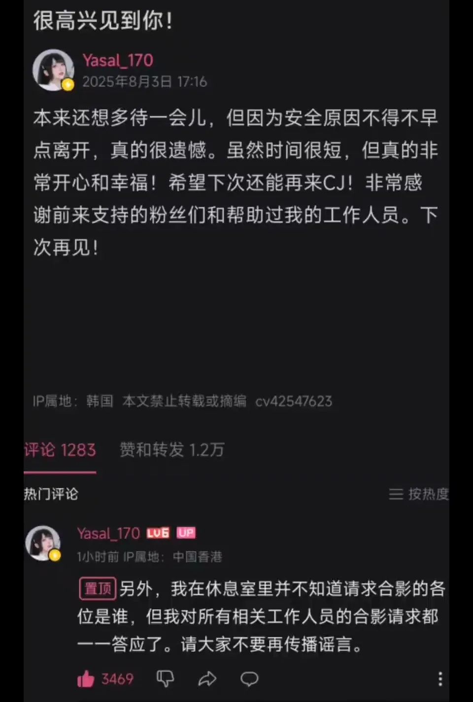 韩国coser Yasal在ChinaJoy活动中因经纪公司安排不当,被迫参与低级互动视频引发粉丝愤怒,场馆限流导致互动受阻,自由行被取消后提前离场;代理公司十三月沉默删评激化事件,Yasal澄清视频却遭粉丝质疑真实性。