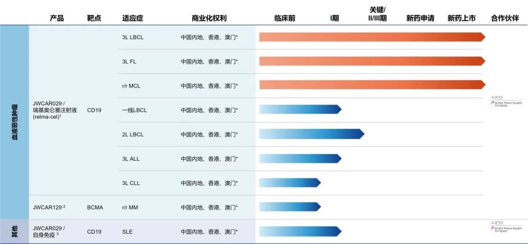 中期阶段:基奥仑赛获批 LBCL、FL、MCL;JWCAR129(BCMA)推进至后期,覆盖更多 MM 患者[5][20]