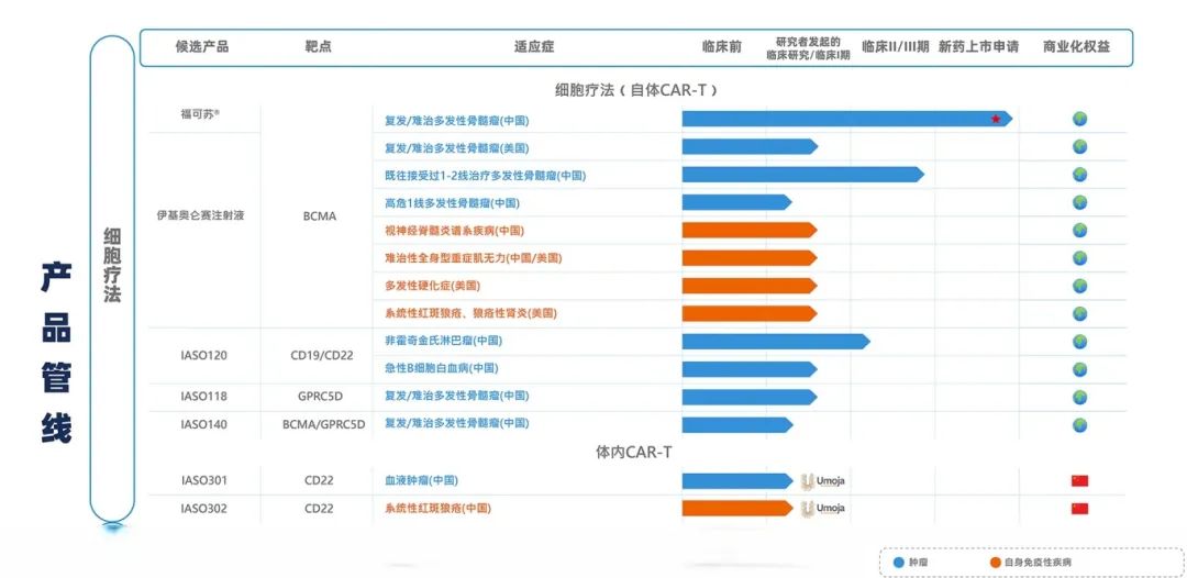 • 在研:IASO120(CD19/CD22)针对 NHL(年发病率 3.5/10 万)和 ALL[3][22]