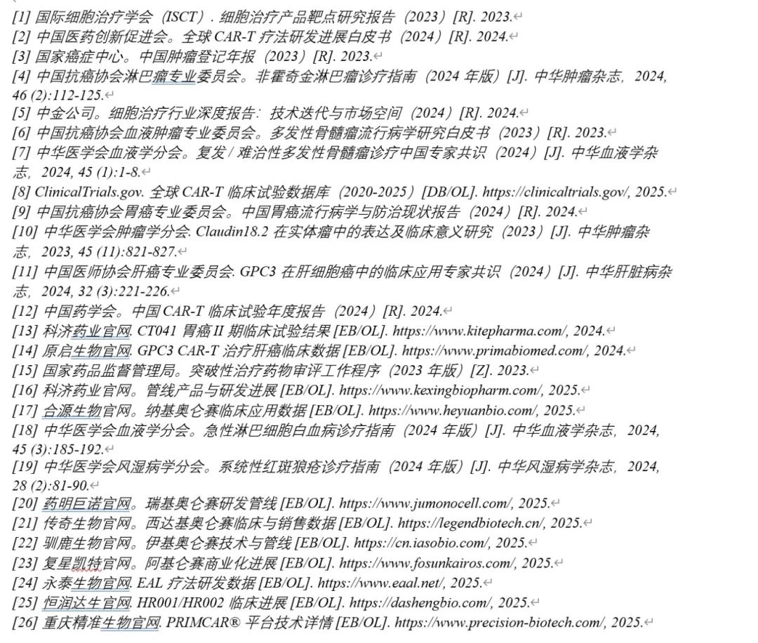 • 阿基仑赛(LBCL/FL):覆盖 150 余家医院,2024 年销售额 5 亿元,对应复发/难治 LBCL 患者 1.2—2 万人/年[3][23]