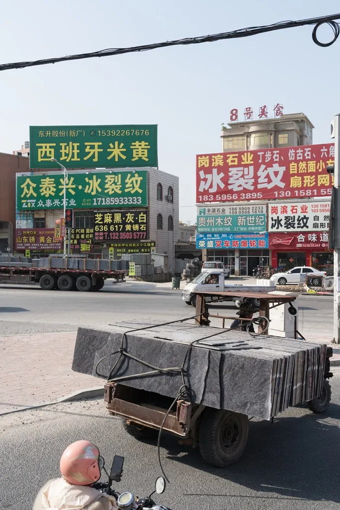 水头本身不产石,却以石为天,它是全球有名的石材转运中心,世界各地的石材在这里汇聚,加工之后再转运出去。现在,水头大大小小的马路边都是琳琅满目的各种石材招牌:西班牙米黄、丝绸之路、英国棕、巴西鱼肚白、安格拉黑……仿佛这里装着全世界。