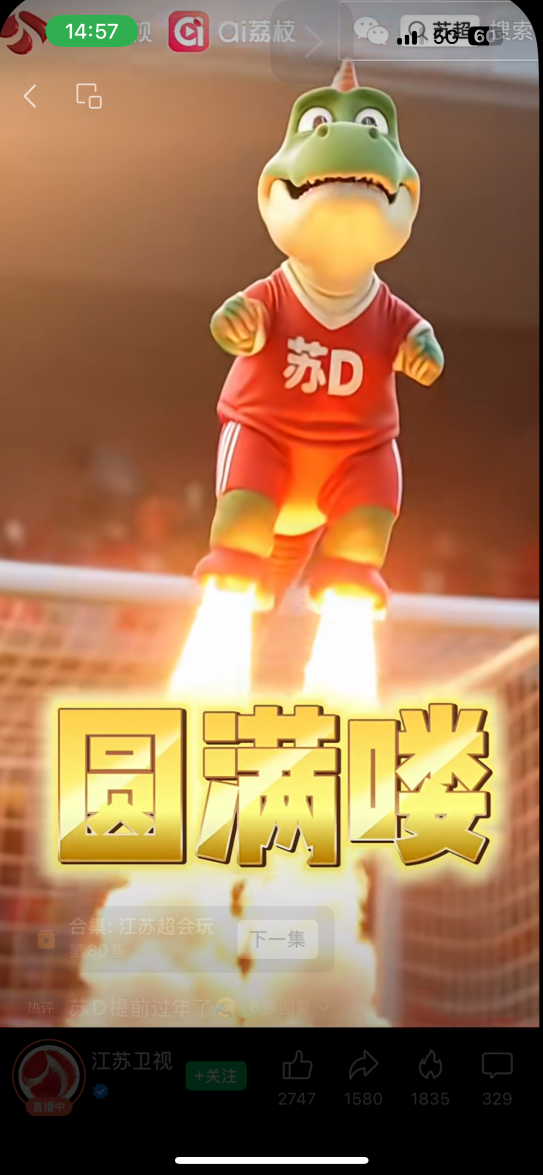 江苏卫视说,看常州那激动的样子,像是夺冠了。