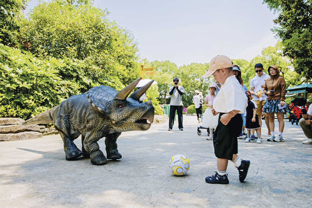 再进恐龙园,小恐龙角角已经变成网红,它被孩子们团团围住。