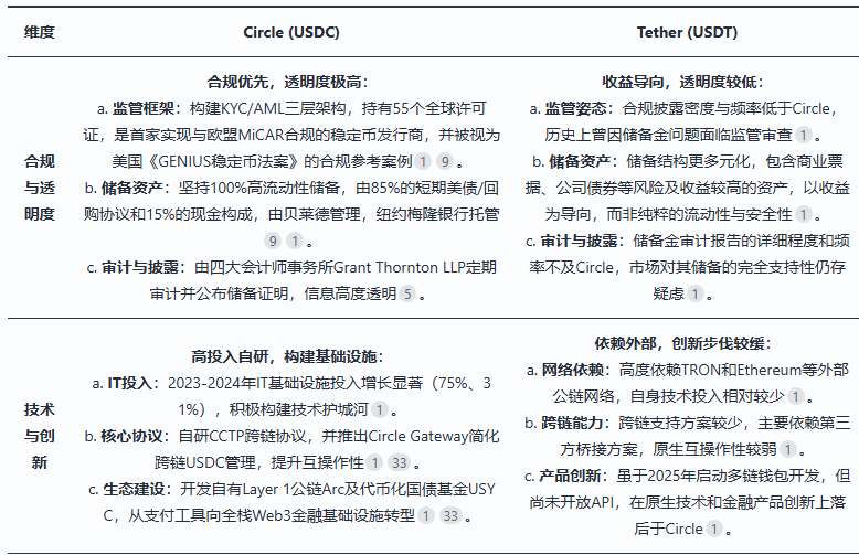 Circle与主要竞争对手Tether的对比分析