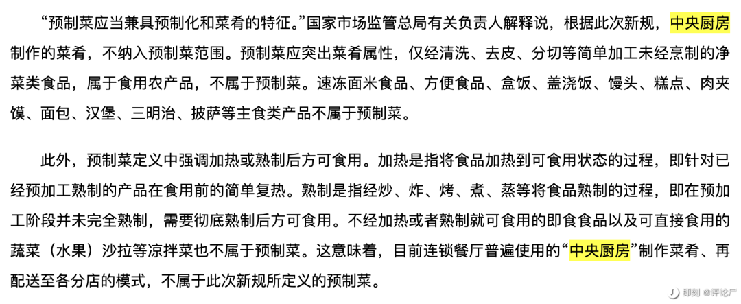 贾国龙的预制菜,是国家市场监管总局定义的“预制菜”,标准如下: