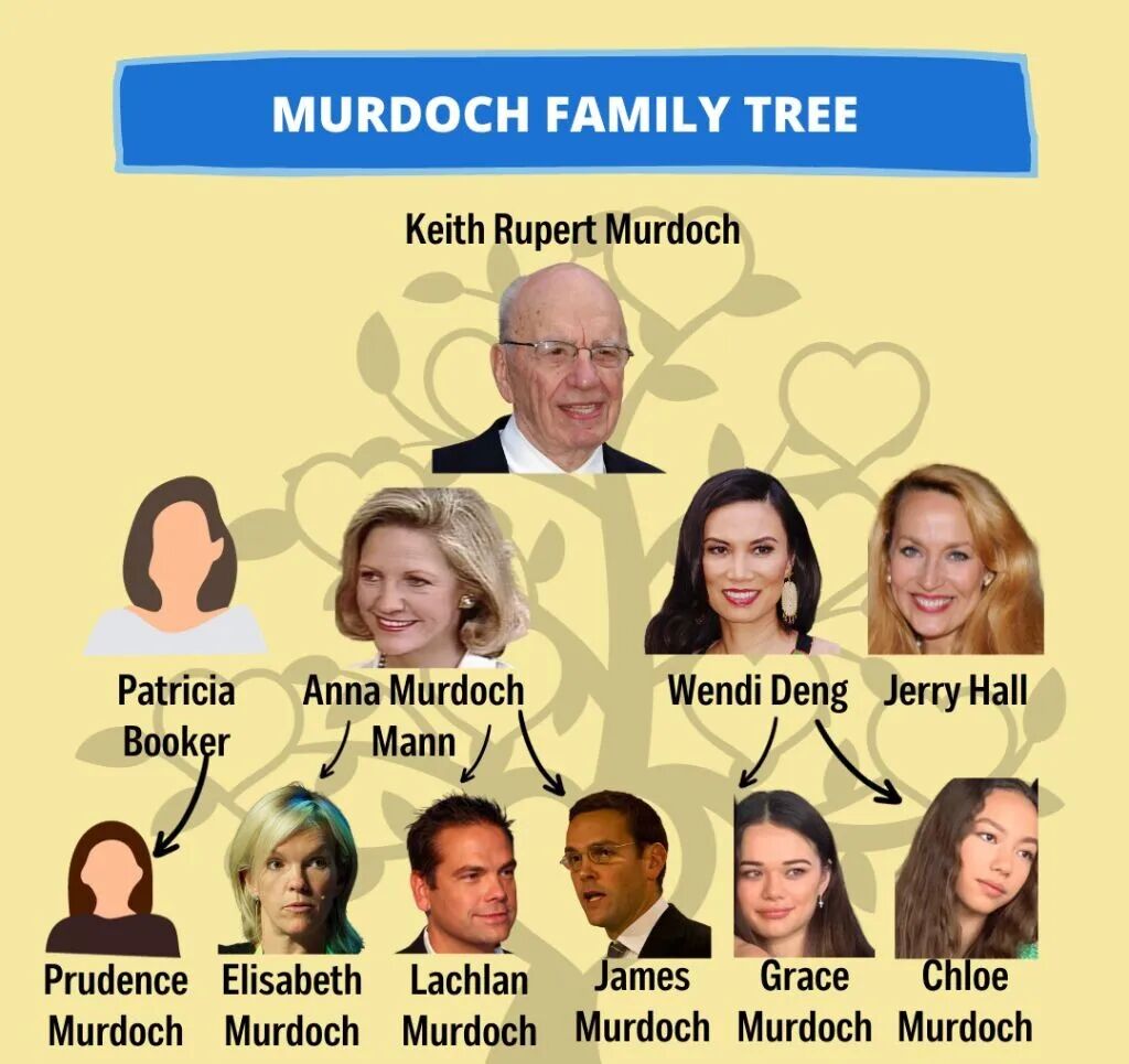 1999年,默多克在与第二任妻子安娜·托芙离婚后设立默多克家族信托(MFT),承载新闻集团投票权,意在保障四个年长子女(Prudence、Elisabeth、James、Lachlan)的共同继承。该信托不可撤销,并借助双重股权结构形成“投票权高度集中、经济权益分散”的格局,为后续控制权博弈埋下伏笔。
