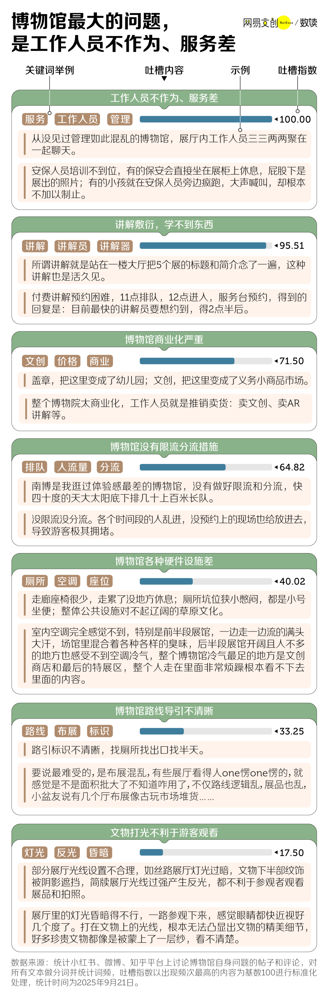 社交平台上网友们讨论博物馆自身存在的问题时,提到最多的就是工作人员不作为、服务差。
