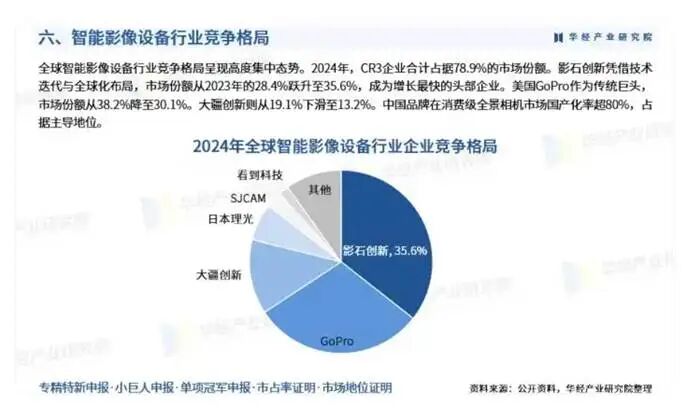 而分流这部分市场份额的,正是影石创新这类专业级竞争对手。同期内,其全球市场份额从 28.4%提升至 35.6%。