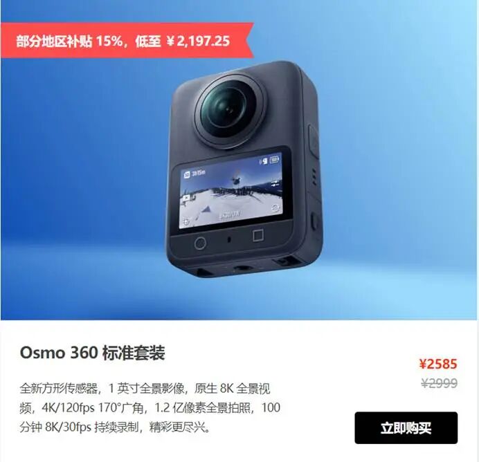 这款产品不仅在参数上对标影石 X5,定价还低出 800元,以 2999元的价格直接冲击市场,而此次价格更是降到了2585元。