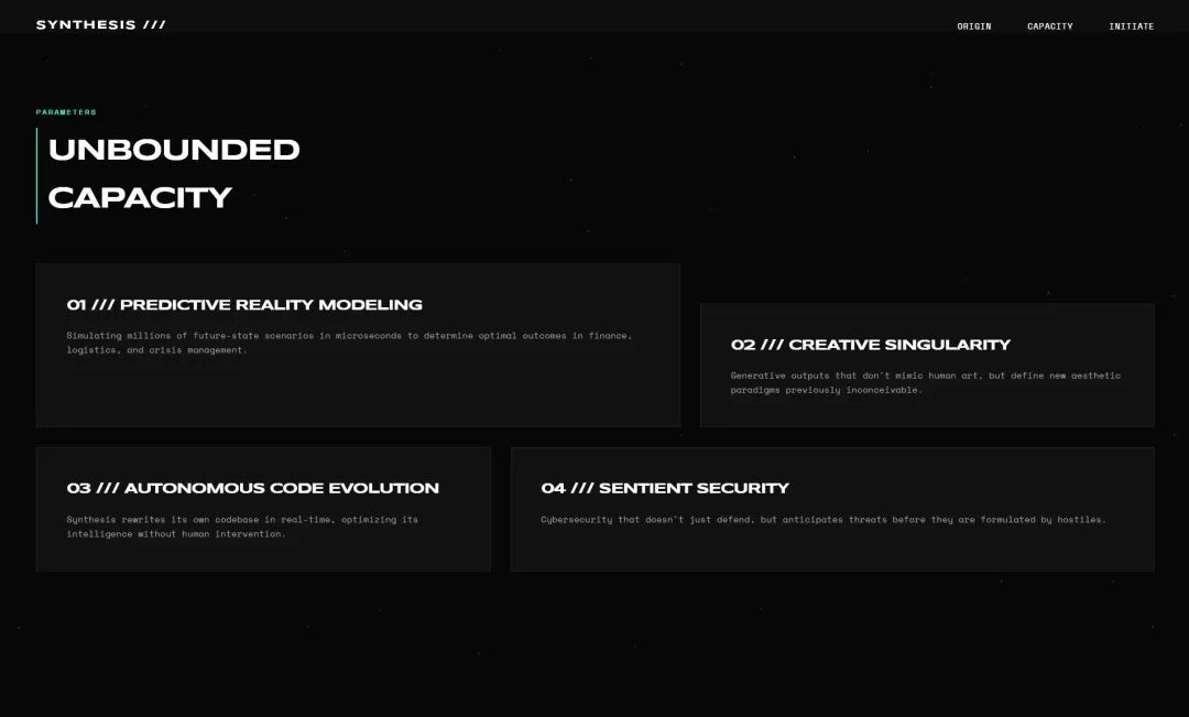 就像这个关于大语言模型的网站,输入的提示词仅仅是“为关于 LLMs 的网站编写完整的 HTML、CSS 和 JavaScript,以创建一个令人惊叹、大胆、富有创意和独特的着陆页。它应该看起来像是世界顶尖的网页设计公司从头开始构建的。”