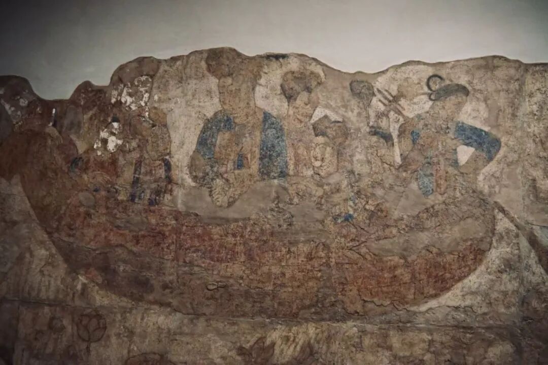 (此处地下出图的唐人行龙舟图,当地的说法是船上之人是当时唐皇李治的皇后,也即未来的女帝武曌,Mr.Q)