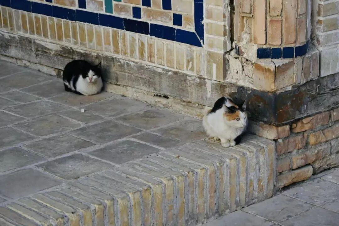 • 😺 布哈拉世俗日常:猫与圆润建筑映衬中世纪城市的生活气息与现代艺术融合。