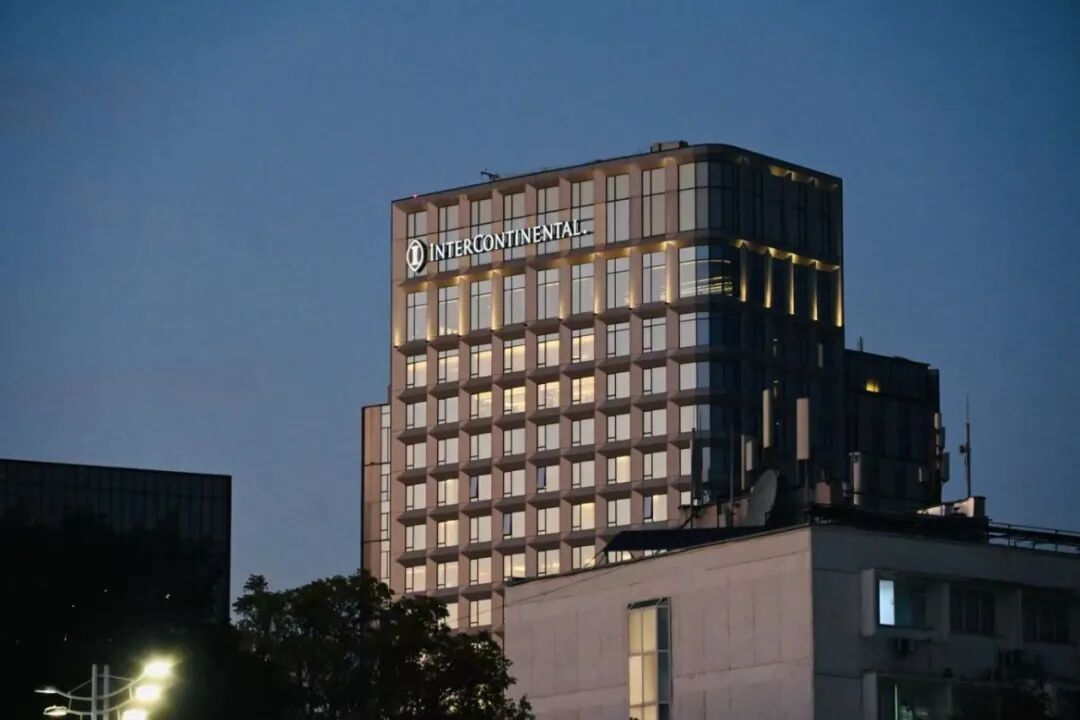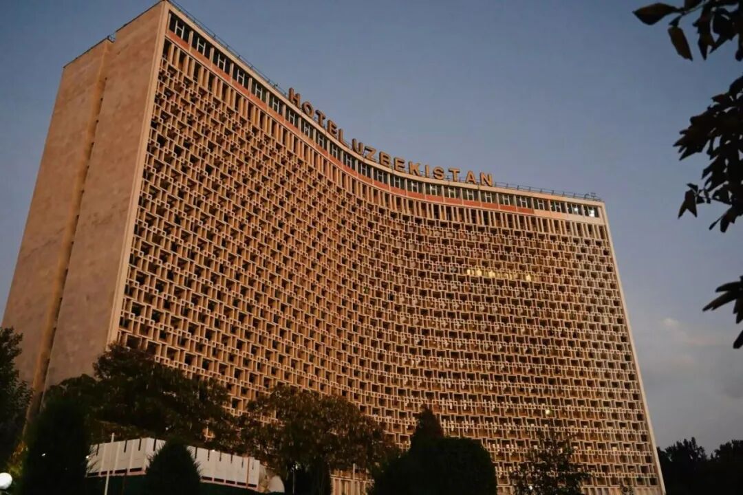 (帖木儿广场旁“现代主义”的乌兹别克斯坦酒店和“更现代”的洲际酒店,建筑是具象遗产和现在,Mr.Q)