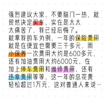 小红书等社交平台上,一股“买车劝退”的浪潮正悄然蔓延。