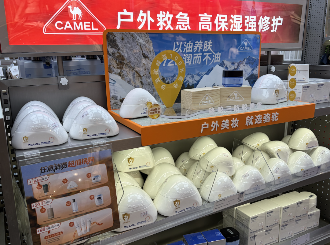 于骆驼而言,它想把鞋服的“专业场景能力”平移到美妆,“冲锋衣怎么做防护,美妆就怎么做防晒”;线下门店也是优势,消费者可以直接试涂试用,顺手带走一件;而最关键的是,骆驼美妆主打的是“好用不贵”,延续了“满大街都是骆驼”的思维,“普通人也能轻松用上户外级防晒”。